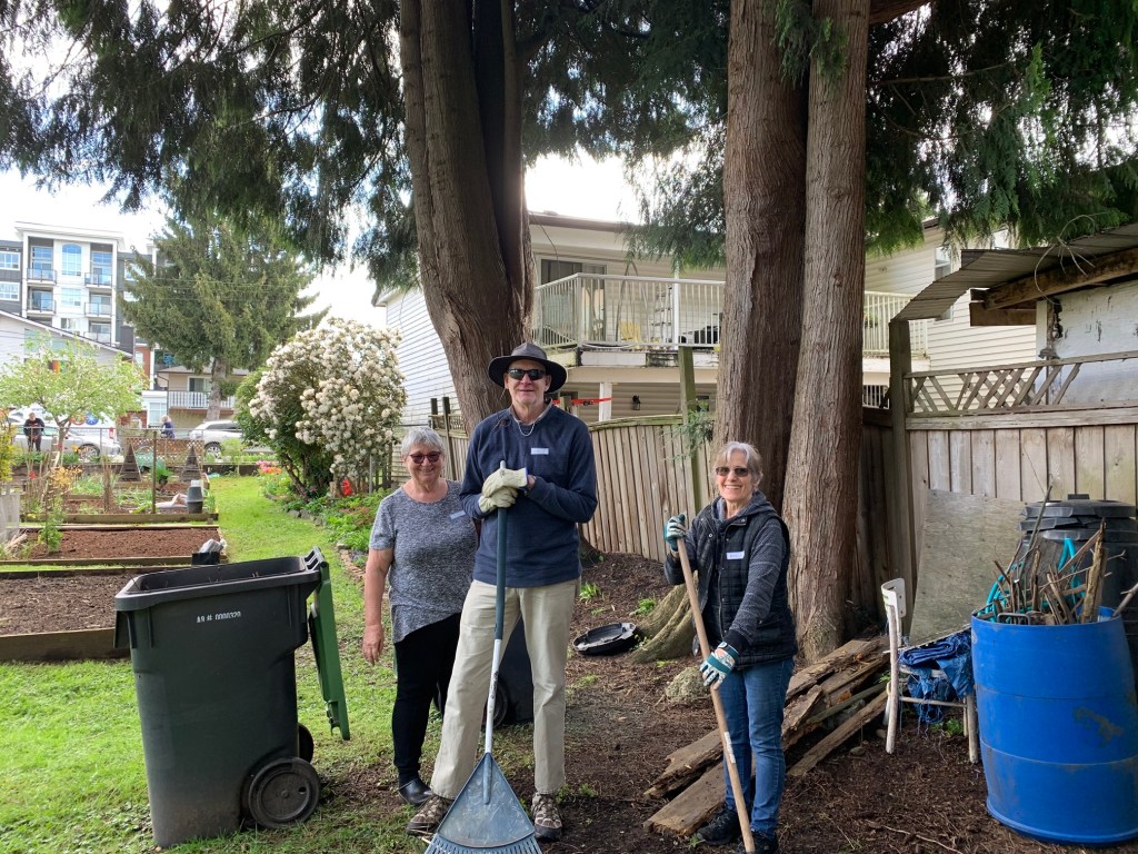 It was wonderful to welcome new garden members and to reconnect with returning members as we made quick work of our spring cleanup and distribution of mushroom manure to all garden plots.